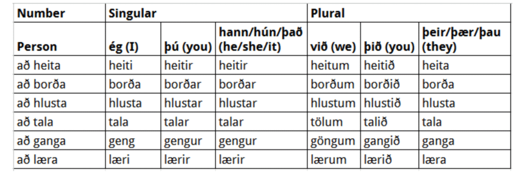 In this lesson, you’ll learn how to use common Icelandic verbs in the present tense and how to conjugate them.